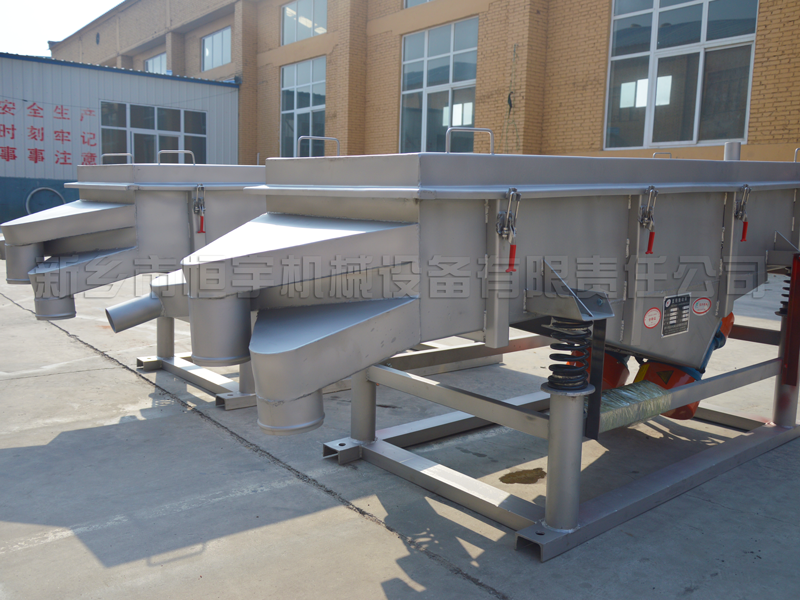 直線振動篩又稱輕型直線篩,用于粉狀或顆粒狀干式物料的篩分或液體物料的過濾,篩分細度可達到325目/英寸。采用角度可調(diào)控的激振源,根據(jù)客戶篩分過濾要求可單層或?qū)邮褂?,層?shù)可達到五層。篩框一般為木質(zhì)結(jié)構(gòu),若篩分腐蝕性物料時,與物料接觸部分可以采用不銹鋼制作。